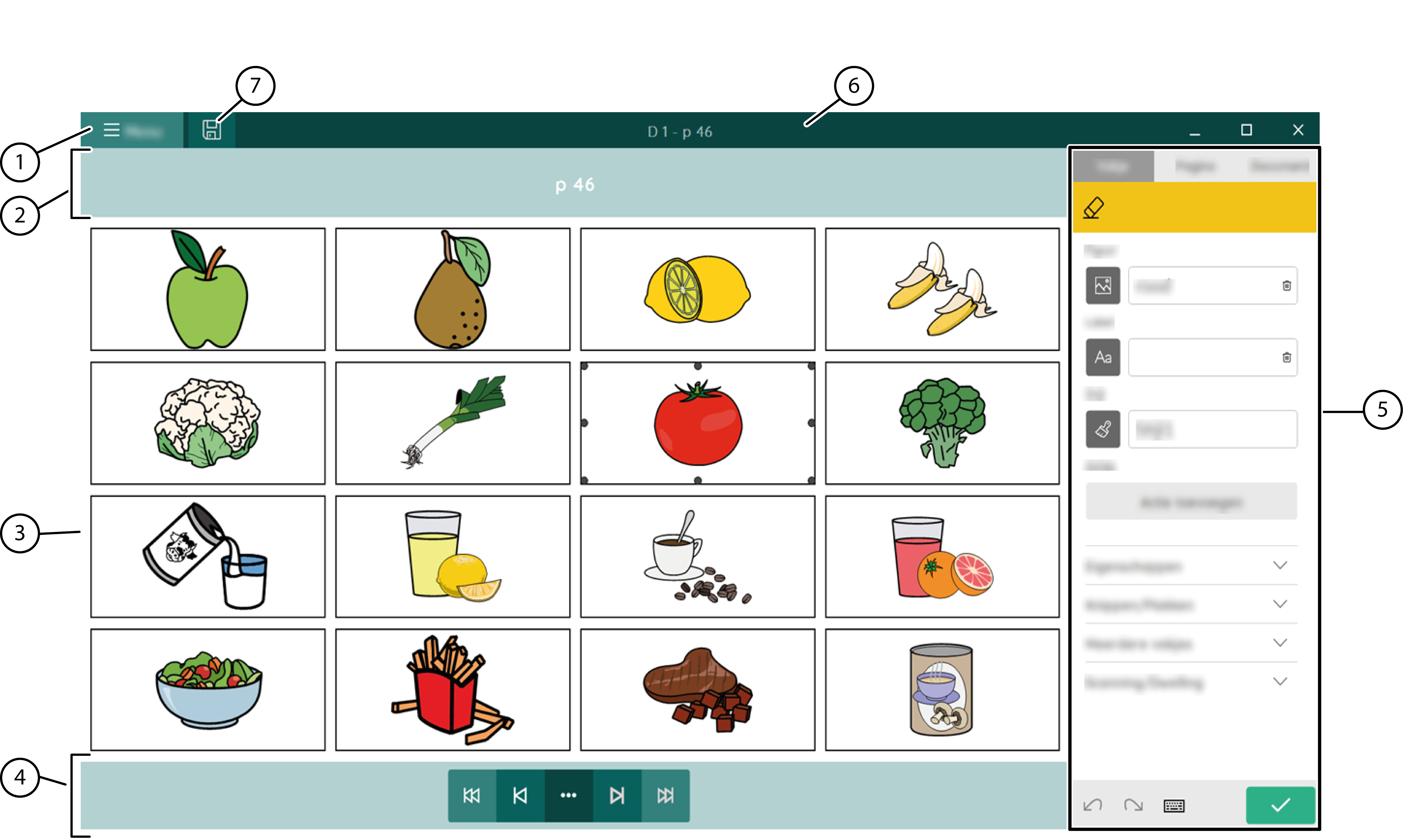 | 3 | La finestra principale | Mostra la finestra di modifica della pagina attiva del set di pagine. |